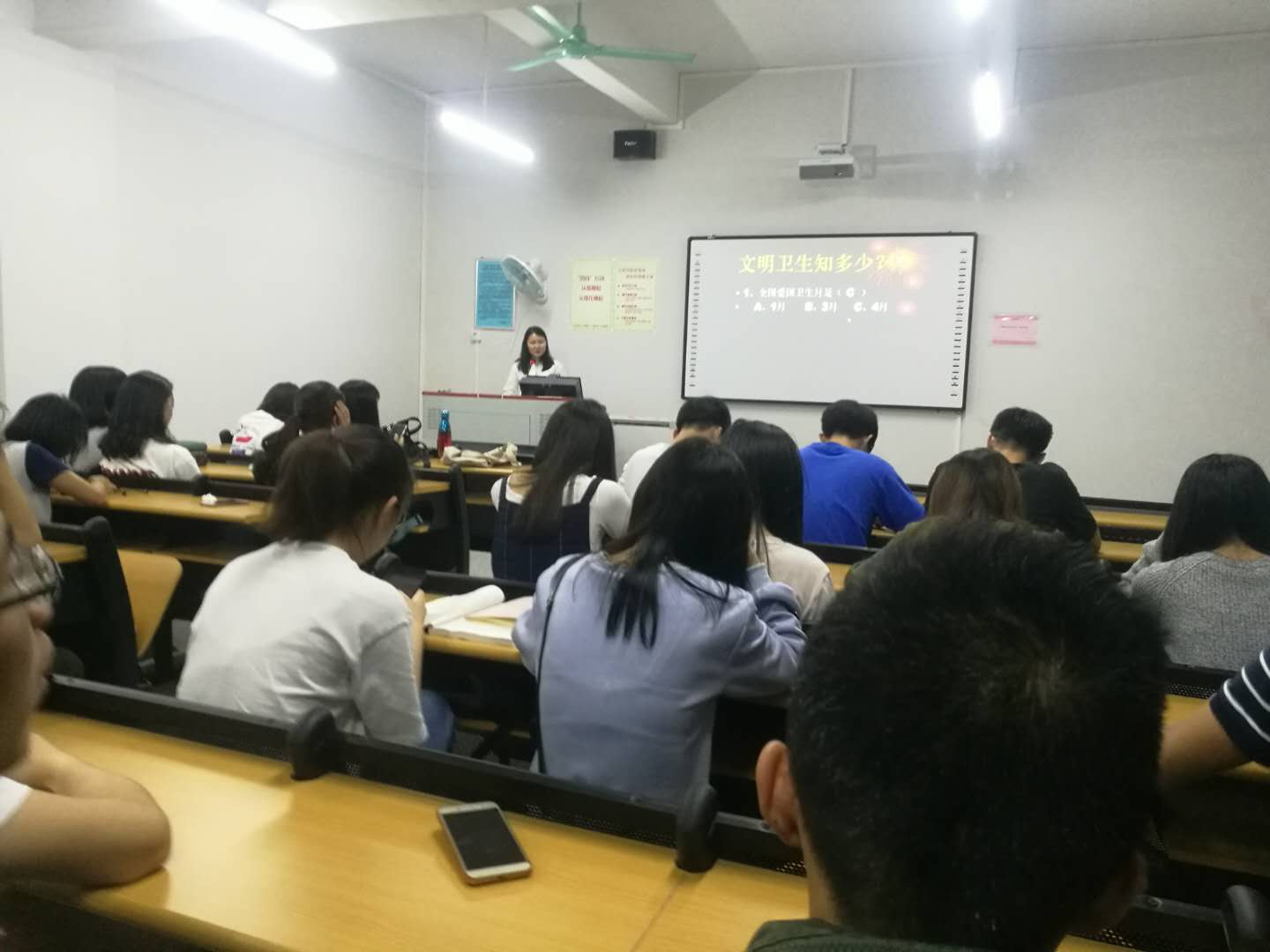 主题班会中,团支书以案例分析、知识问答、图片介绍向同学们详细地讲解关于卫生、文明、纪律习惯的知识。同学们认真听讲,积极参与问答,现场学习氛围浓烈,不少同学反映从此次班会中学习到很多以前不了解的知识,并且希望日后会有更多的不同的主题班会。