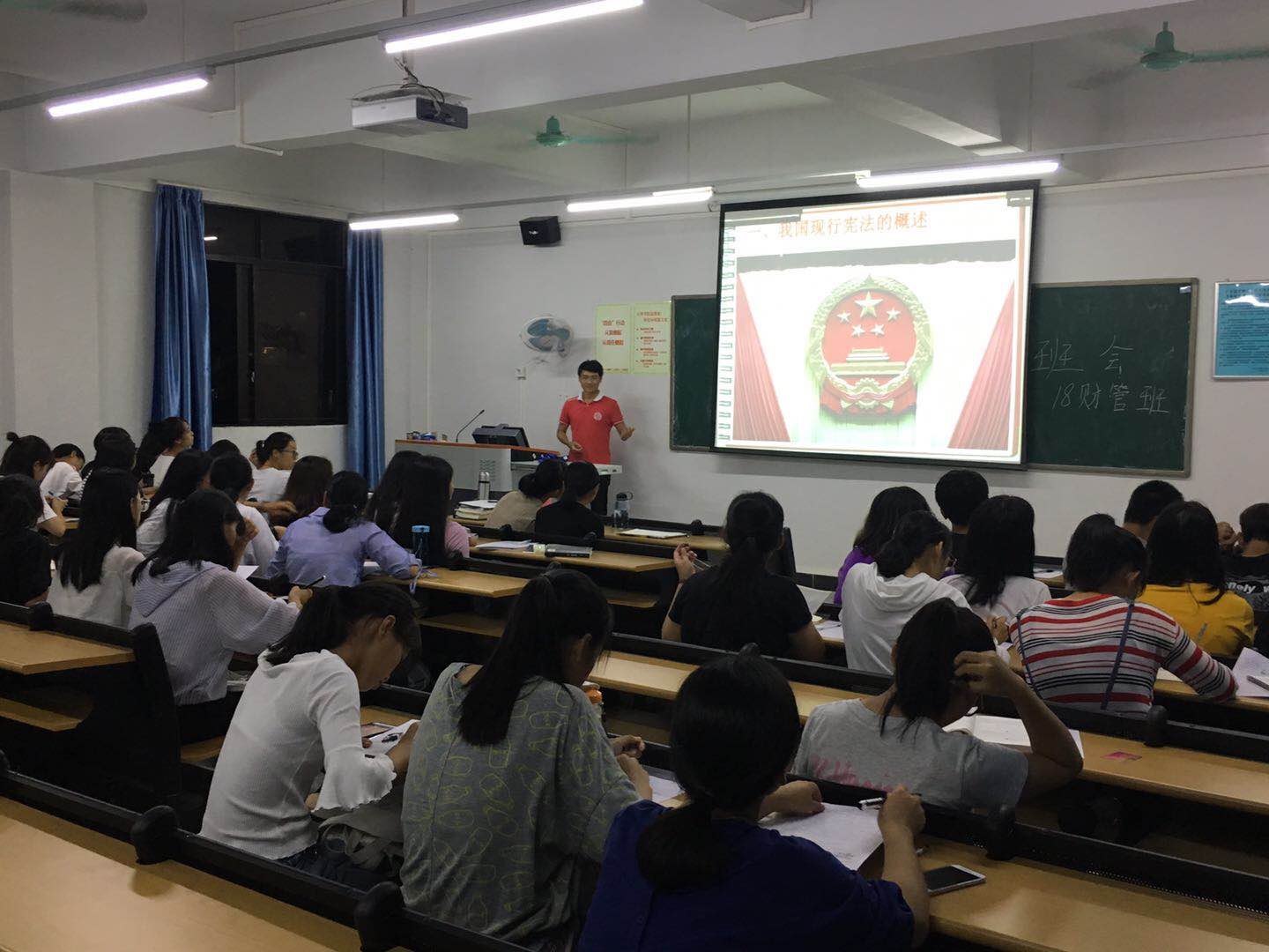 (通讯员 冯益辉)10月9日晚,18财管班根据公司文件要求,在12栋901室圆满完成了宪法学习。会中,主持人学委冯益辉以通俗易懂的方式讲述了宪法的主要内容,同学们也较快地吸收了课件中的精华,初步树立了宪法意识。