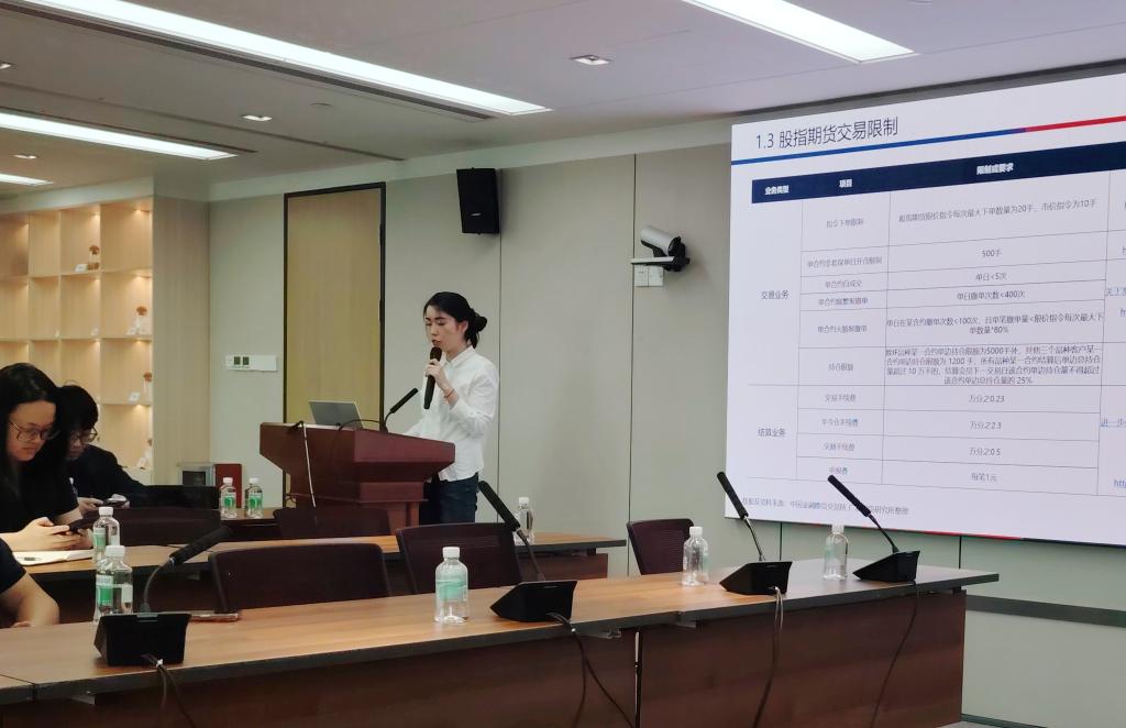 研究员陈尚宇则讲解了股指期货与期权的基础知识、交易机制与实战应用,包括合约要素、双向交易与T+0制度、当日无负债结算制度等核心内容,指出保证金交易同时放大了风险与收益,并结合实际案例演示了股指期货的风险管理与策略构建。
