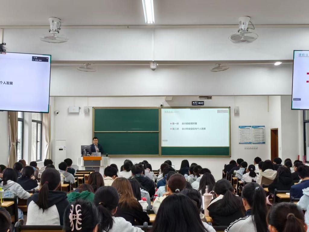 董老师以一段生动的行业发展史开篇,追溯会计与经济发展的共生关系。他指出在当代中国,企业财务管理水平与经营质量高度绑定,这也凸显了会计环境对专业发展的核心影响,由此自然切入本次讲座的核心——系统解析会计所处的多元环境体系与职业发展路径。