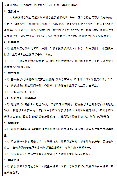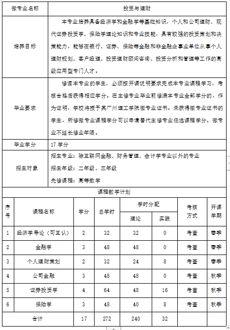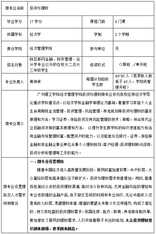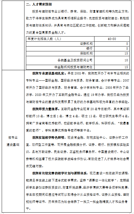 二、投资与理财微专业人才培养方案