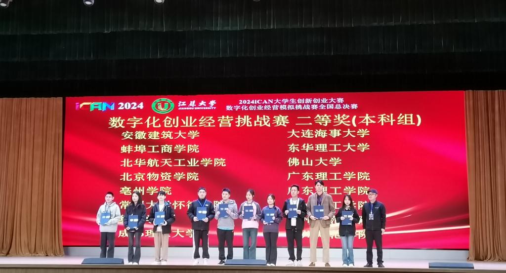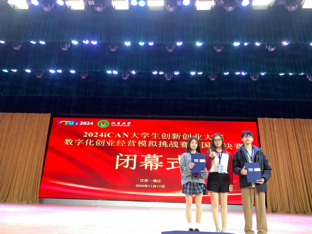 (罗崴)2024年11月16-17日,由iCAN老员工创新创业大赛组织委员会主办,江苏大学承办的2024年iCAN老员工创新创业大赛数字化创业经营模拟挑战赛全国总决赛在江苏大学隆重举行,公司学子经过校赛、省赛的层层选拔脱颖而出,突围进入全国总决赛争夺最终奖项,经过一天激烈的角逐,公司学子周金卢、李静、苏可晴荣获团队二等奖。