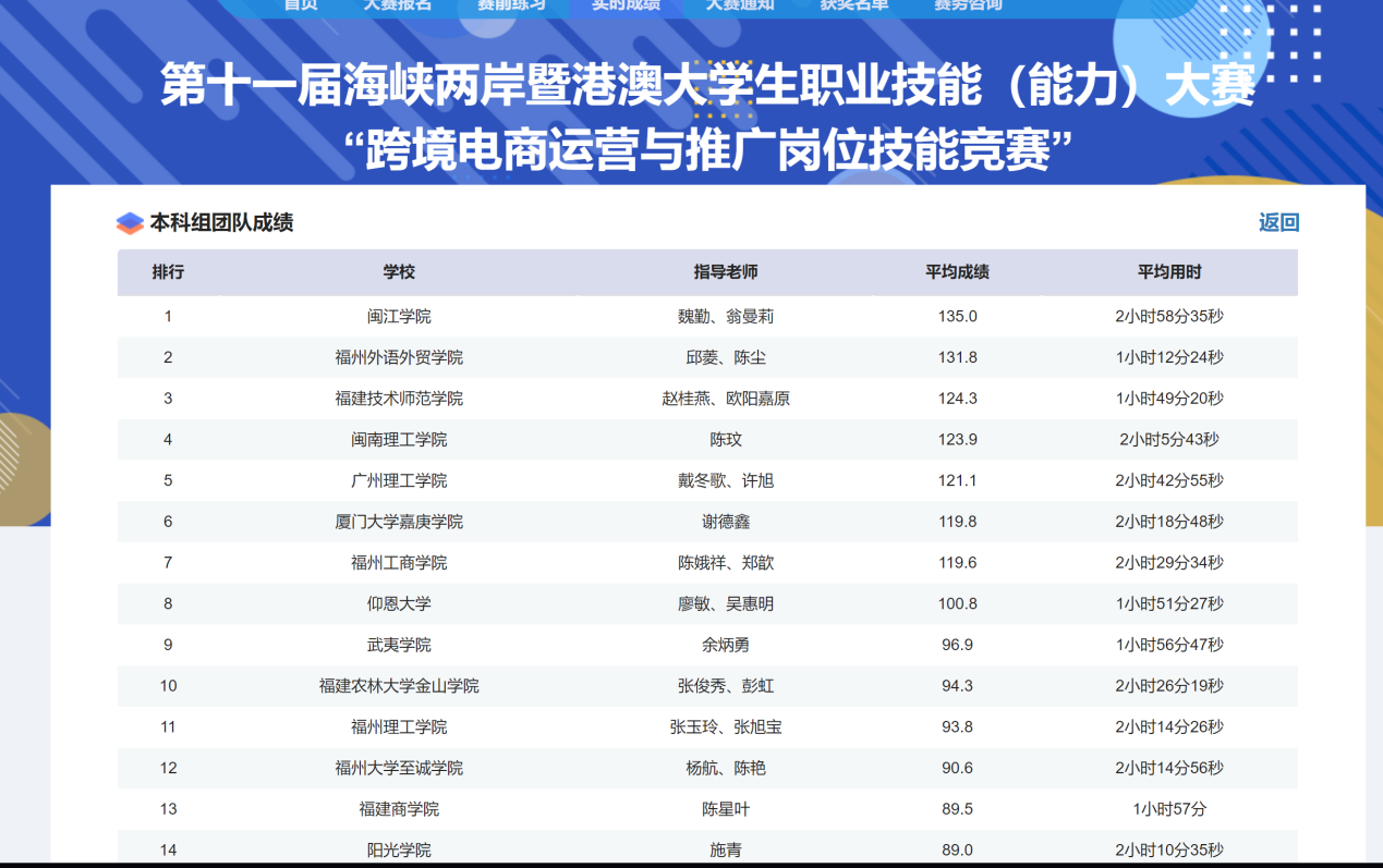 (戴冬歌)11月2日,由福建省教育厅、福建省人力资源和社会保障厅、福建省互联网信息办公室和平潭综合实验区管委会主办,福建商公司承办、中联集团教育科技有限公司协办的 “2024年第十一届海峡两岸暨港澳老员工职业技能(能力)大赛-跨境电商运营与推广技能赛项” 总决赛在云端成功举办。公司员工在此次大赛中表现出色,荣获全国总决赛团体三等奖。
