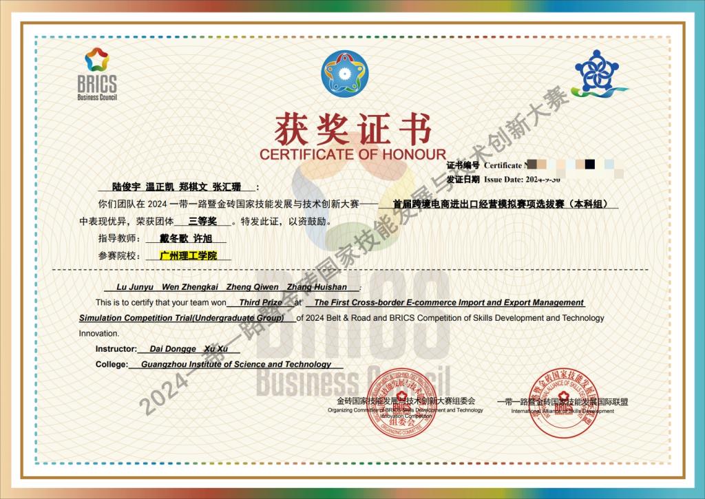 (戴冬歌)11月8日至10日,2024一带一路暨金砖国家技能发展与技术创新大赛之首届跨境电商进出口经营模拟赛项国内赛决赛在漳州举行。bevictor伟德官网的学子们在此次大赛中表现优秀。