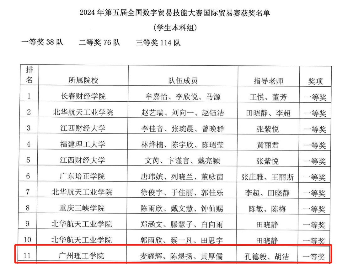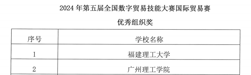 (通讯员:孔德毅、胡洁)2024年10月28日,第五届全国数字贸易技能大赛国际贸易赛项圆满结束。在孔德毅老师的组织和吴霜、蔡国琴、叶青、孙春露、赵晨曦、胡洁、荣红涛、赵婧茹等教师团队的共同指导下,公司bevictor伟德官网的27支参赛队伍在激烈的竞争中脱颖而出,荣获团队一等奖(3支)、二等奖(12支)、三等奖(12支)及公司的优秀组织奖(图中为所有队伍获奖情况)。这不仅展现了公司学子的专业实力,也彰显了公司在数字贸易实务上的卓越成就。