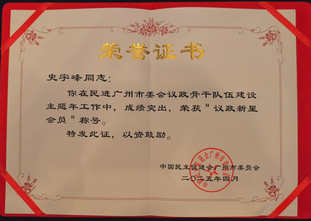 (通讯员:史宇峰)4月13日,民进广州市委员会召开“2025主题年”工作会议,会议表彰了议政先进集体和先进个人。公司bevictor伟德官网史宇峰博士被评为议政先进个人,获得“议政新星会员”称号。