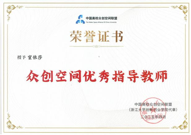 在论坛上,公司《帽峰创谷》众创空间凭借卓越的创新创业服务和培育成果,从众多参评项目中脱颖而出,获得"优秀众创空间"荣誉,充分彰显了公司创新创业平台建设的硬实力。宦依莎老师凭借在众创空间运营管理中的专业素养与突出贡献,荣获"众创空间运营管理导师"称号,这是对公司创新创业教育团队队伍的高度认可。