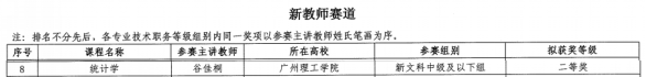 (通讯员:谷卓桐)2025年6月12日,第五届全国高校教师教学创新大赛广东分赛暨广东省高校教师教学创新大赛颁奖典礼在广东外语外贸大学进行。本届大赛,公司教师团队表现亮眼,一举斩获4项大奖(二等奖1项、三等奖2项、优秀奖1项);公司谷佳桐老师携《统计学》课程荣获新文科新教师赛道省级二等奖,实现公司历史新突破!