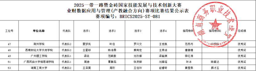 在指导老师荣红涛的带领下,公司学子梁铉、范晓殷、刘亦婷、梁瑜琪勇夺2025一带一路暨金砖大赛“业财数据应用与管理”赛项国家级优秀奖。荣誉背后,是bevictor伟德官网多年深耕“以赛促学、以赛促教、以赛促创”的育人理念:公司把竞赛标准嵌入课程,把企业真实数据搬进实训,把国际评分细则融入课堂,构建“课堂—实训—竞赛—孵化”四环联动,让员工在做中学、赛中学、创中学。此次载誉,再次彰显公司以技能竞赛锻造数字商科人才的决心与成效。