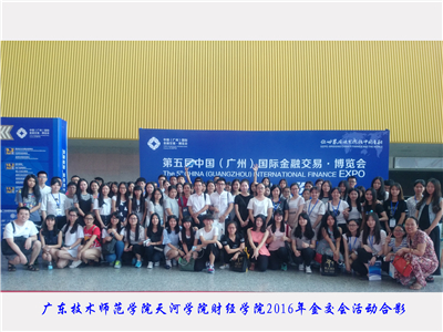 6月24日下午,公司200多名员工在副经理陈天勇、经济学系谷雯、高桦及实验中心副主任张建龙四位老师的带领下参加了第五届中国(广州)国际金融交易·博览会(简称“金交会”),主要组织员工参加了“跨境投融资研讨会”、“金融人才招聘专场活动”、“众创空间投融资路演”及现场展览、交流、交易活动。