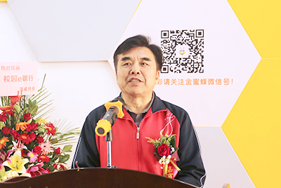蔡敏副董事长致辞,感谢建行为员工搭建校园实践平台,给员工提供真正参与企业经营的实践实习机会,让员工实实在在融入到社会工作中。他说,公司正加强校企融合,将企业引进校园,打造校内实践教学基地,着力培养基础扎实、知识面宽、动手能力强、富于创新精神的高素质应用型专门人才,稳步推进公司向应用型高校转型,勉励同学们利用校园e银行这一平台,锻炼自我,服务师生,成为对社会有用的人才。