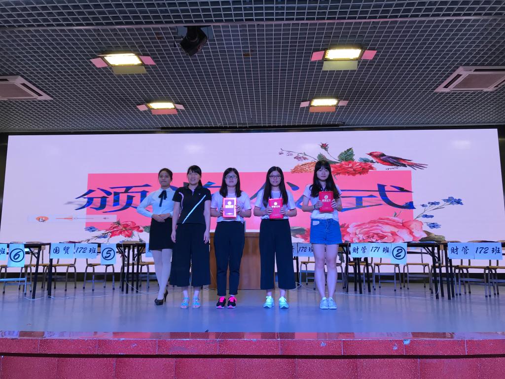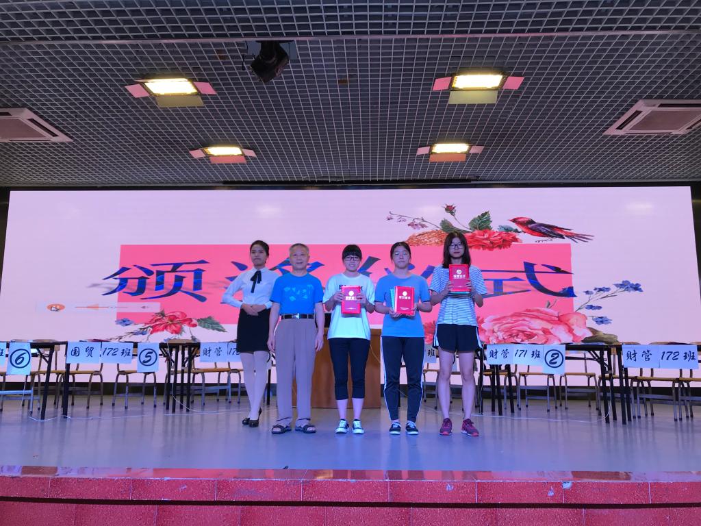 最后颁奖环节,17财管1班张文巧,邓伟娟,何志梅夺得冠军,杨润生教授为其颁发获奖证书。至此,公司第九届经济学原理知识竞赛圆满落幕。