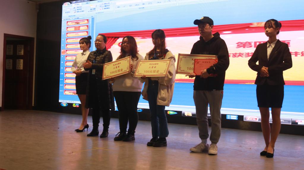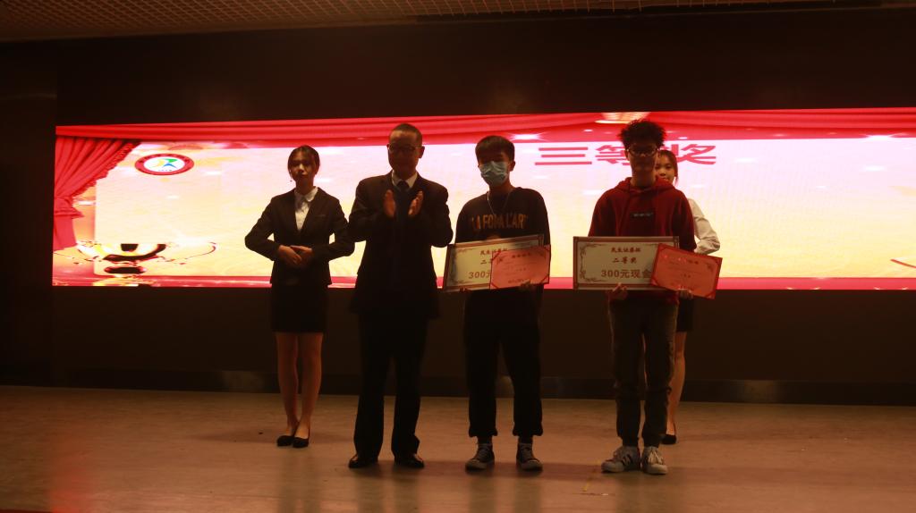 杜永红总经理、李美珍经理、李欣主管、林耿芳师姐为第八届“民生证券杯”获奖选手颁发荣誉证书和奖金。随后,此次大赛冠军19造价1班林蔚君作为获奖员工代表分享了自己的竞赛历程与收获。