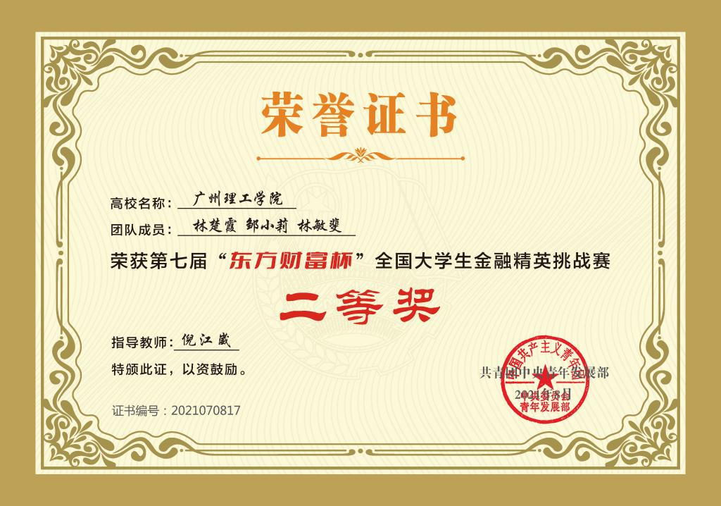 荣获二等奖证书
