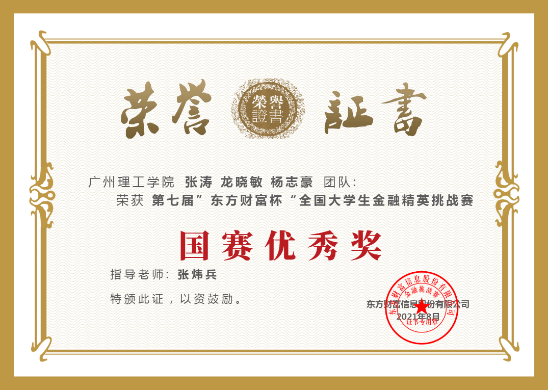 荣获国赛优秀奖证书