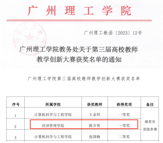 为推动教学创新、培养一流人才,公司举办第三届教学创新大赛,从2022年12月-2023年3月,由院级到校级,整个比赛持续约4个月,经过层层选拔,2023年2月27日,公司陈少英老师及其团队以“基于成长型思维模式的《统计学》教学创新”获得公司第三届教学创新大赛一等奖,并被推送参加广东省省赛。