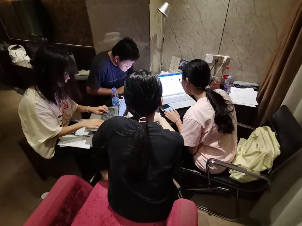 在比赛中,经过长时间的努力和团队合作,邱晓云、殷妮、张嘉俊、梁宏微同学充分展示了他们在金融科技应用领域的才华和能力。他们在数据处理、人工智能、区块链等领域展现出了出色的专业技能和创新能力,成功解决了复杂的任务与挑战。