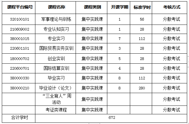 (双语)、外贸函电、单证实务、国际商法、报关理论与实务。