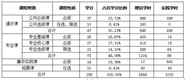 (一)课程体系结构及学时学分比例表