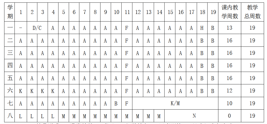 K专业实习L毕业实习M毕业设计(论文)N假期O制图实训P专业实训
