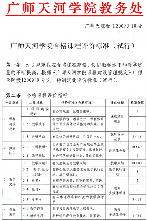 广师天河公司合格课程评价标准(试行)