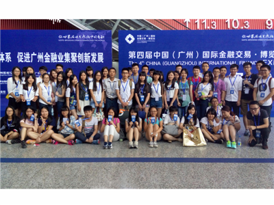 6月26日下午,公司140多名员工在经济学教研室主任倪江崴、实训教研室主任陈天勇、实训老师张建龙等老师的带领下参加了第四届中国(广州)国际金融交易娠览会(金交会),主要组织员工参加了“21世纪海上丝绸之路金融合作与发展高峰论坛”和“金融人才招聘专场活动”。
