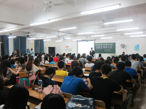 2013年4月18日晚,财经系首届创新创业大赛决赛暨颁奖大会在七栋教学楼418举行。财经系副主任胡智敏,实训教研室主任陈天勇及各专业老师出席了本次大会。