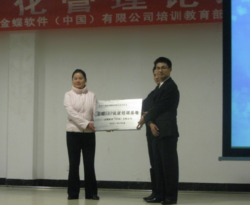 财经系于2009年12月8日与金蝶软件中国有限责任公司签订了校企合作协议书,并举行了挂牌仪式。(图为授牌仪式)