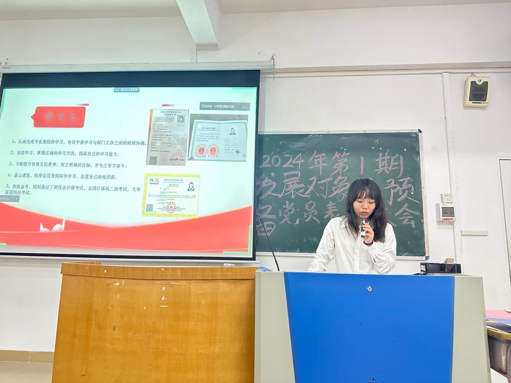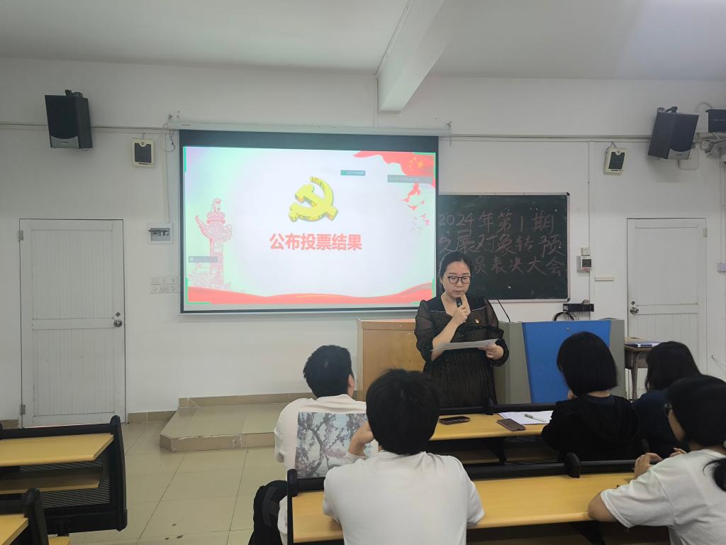 蔡旻珊等17名发展对象向组织作思想、工作和学习情况汇报,并接受支部党员的提问。随后,入党介绍人分别介绍发展对象的考察培养情况,与会正式党员综合考量他们在培养期间的表现,对其能否接收为预备党员进行审议讨论。