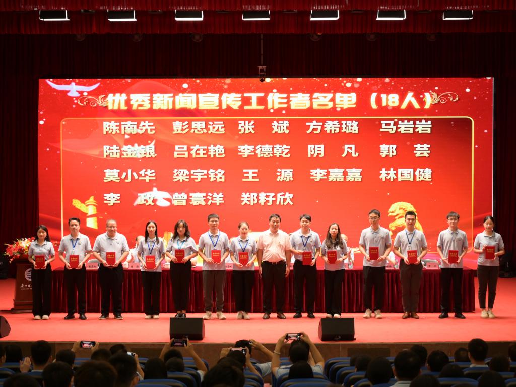 本次大会,共表彰了4个先进党总支,13个员工党支部,72名优秀共产党员,18名优秀新闻宣传工作者,16名优秀党务工作者。其中,公司党总支荣获“先进党总支”称号,公司教工党支部荣获“先进党支部”称号,张宁荣获“优秀党务工作者”称号,彭思远荣获“优秀新闻宣传工作者”称号,钟月月、徐燕宁、赖钰珊、邓垲怡荣获“优秀共产党员”称号。