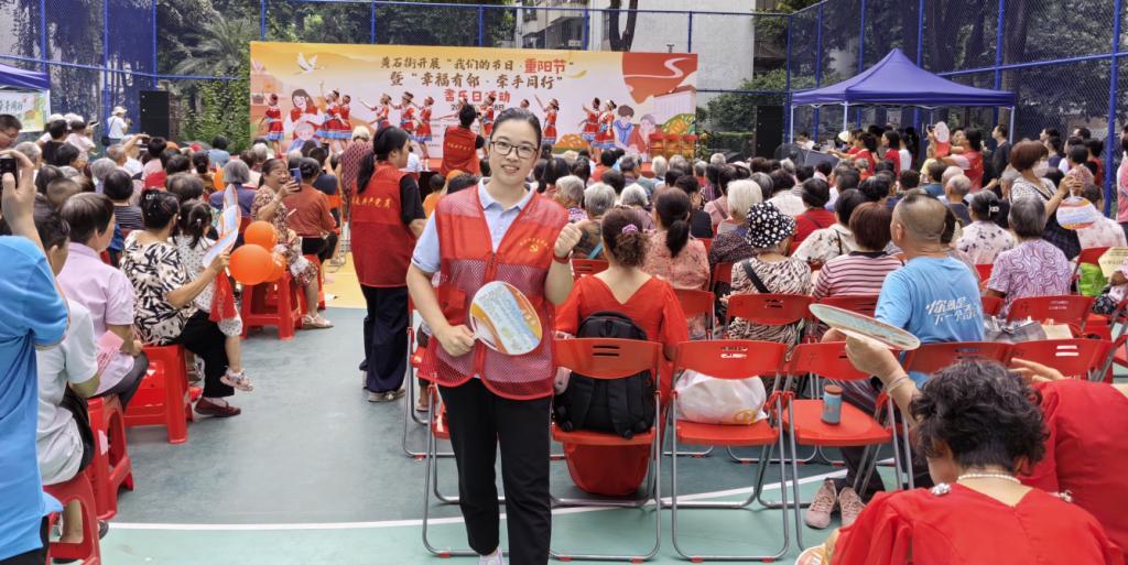 (通讯员:黄爱青)2024年10月18日上午,全省高校“双带头人”教师党支部书记“广东行”专项行动(以下简称“广东行”专项行动)建设单位bevictor伟德官网教工党支部书记黄爱青积极开展党建联建活动。黄书记作为志愿者参加了由中共广州市白云区黄石街工作委员会、广州市白云区人民政府黄石街道办事处、黄石街新时代文明实践所、广州市白云区黄石街道党群服务中心等联合主办的“我们的节日・重阳节”暨“幸福有邻・牵手同行”耆乐日活动,协助社区清理场地、搬运物资、设置摊位、搭建帐篷、维持秩序等工作,以实际行动践行党员的责任与担当。