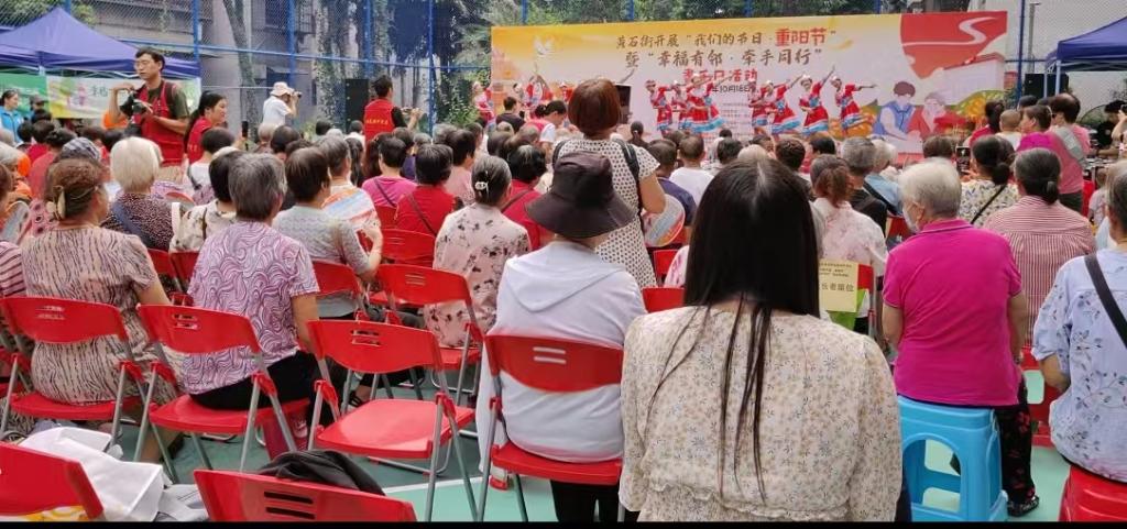 为贯彻落实党的二十届三中全会精神,弘扬中华民族敬老传统美德,倡议社区邻里互帮互助,营造幸福为老社区氛围,此次耆乐日活动意义重大。活动现场热闹非凡,首先是佳节启幕和领导致辞,为活动拉开了精彩的序幕;随后邻里共庆,重阳雅韵启新程,邻里情深、多彩华章映和谐、邻里携手、温馨画卷续华章等环节依次展开,让社区居民们充分感受到了节日的氛围和邻里间的温暖。最后,全体人员合唱《我和我的祖国》,将活动氛围推向了高潮。活动过程中,还有礼品派发,为老人们送上了一份份贴心的关怀。