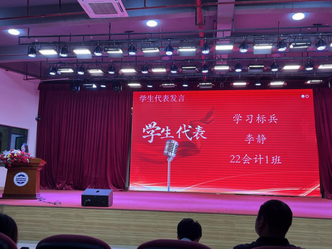 员工代表21国贸2班谢思婷和22会计1班李静发言。她们首先感谢公司全体老师和同学们的帮助,回顾自己在学习过程中的经历和取得的成绩,分享自己如何通过努力、勤奋和科学的学习方法取得了优异的成绩,激励其他同学继续努力,追求卓越,以实现自己的目标。