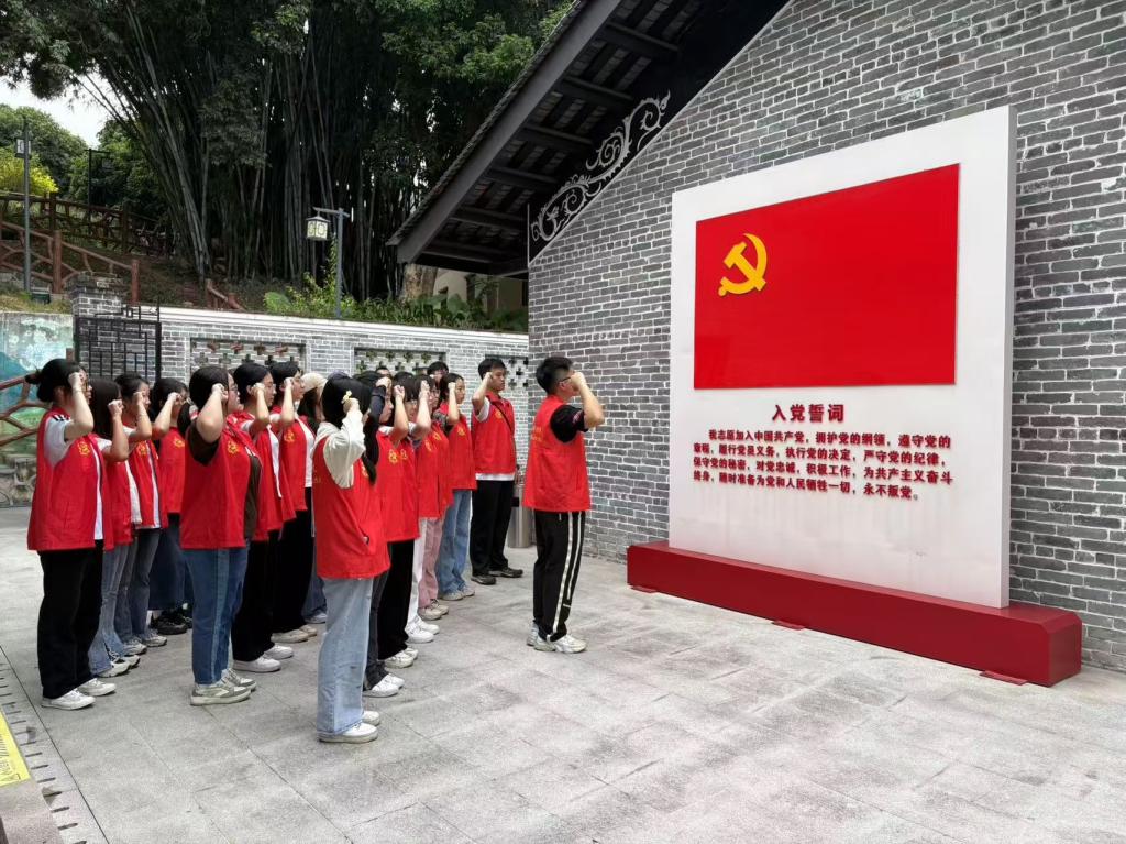 活动最后,在领誓人的带领下,同学们面向鲜红的党旗,整齐列队,举起右拳,庄严宣誓。铮铮誓言响彻整个活动现场,字字铿锵表达了同学们坚定不移听党话、跟党走,薪火相传、接续奋斗的信念和决心。