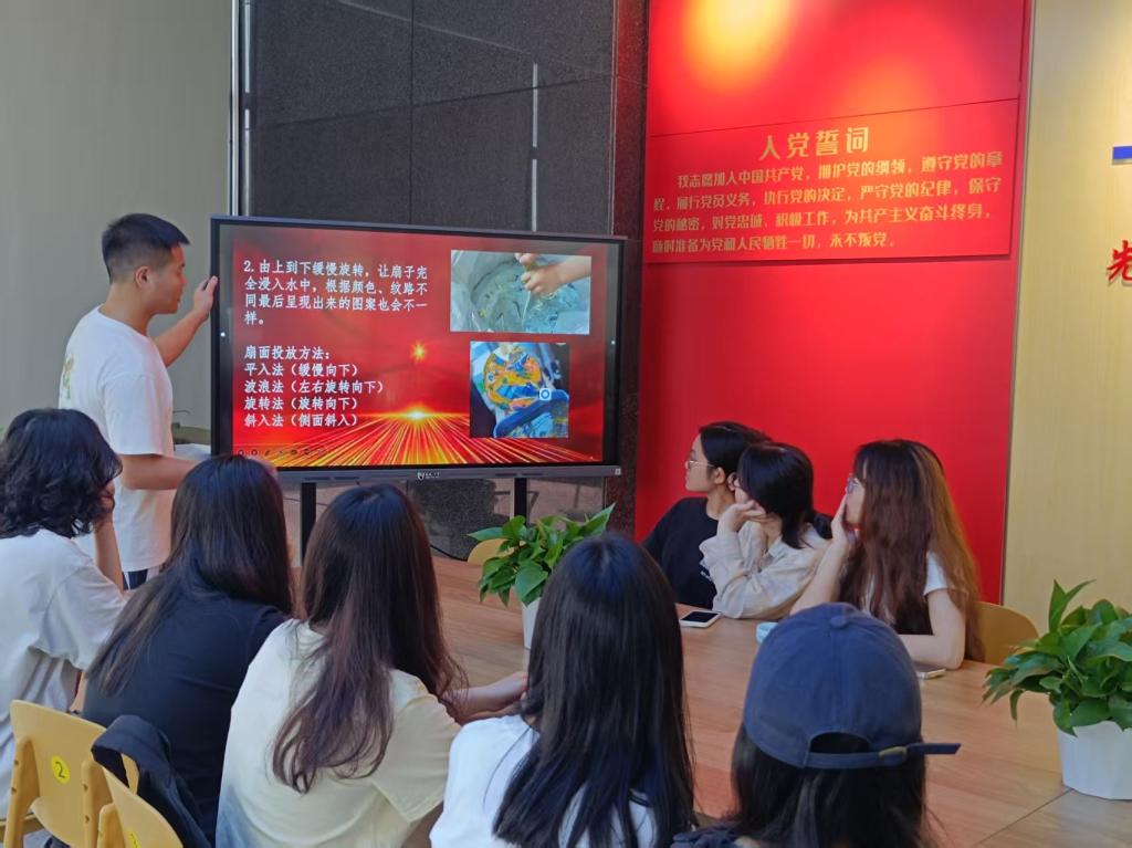 漆扇是漂漆技艺与古风扇子结合的产物,有着千年的文化底蕴。以漆为笔、以扇为画,是中国传统漆艺的重要表现形式。活动开始,支部负责人详细地为大家讲解了漆扇的历史渊源和制作工艺,调漆、上色到绘制技巧都面面俱到。党员们认真聆听,跃跃欲试。讲解结束后,大家积极参与进来,创作出了许多独具特色的漆扇作品。
