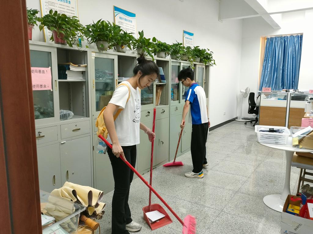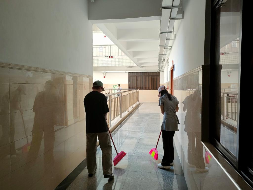 随后,数名员工志愿者分组投入爱国卫生实践。在教师带领下,员工分工协作,对教学楼走廊、实验室、教室及周边绿化带展开全面清扫。重点清理积存垃圾、规范分类设施、擦拭公共设施,并制作文明标语张贴于卫生死角。劳动过程中,同学们分工明确、协作高效,顺利完成环境美化任务,校园面貌焕然一新。