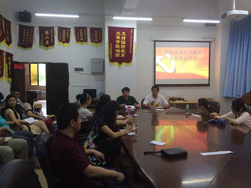 会上,党总支书记李伟民对近期党务工作做了详尽安排。(1)党的群众路线实践教育活动各个支部按照活动方案组织学习活动;(2)结合财经系第二届“教学质量月”开展,各支部要组织党员积极参与,发挥党员的先锋模范作用;(3)各支部完成对党员的评议和评选优秀党员和党务工作者工作,并表决通过评选结果;(4)积极组织各支部党日活动,完成教工支部立项的“党员公开课”及第三员工支部的活动安排;(5)积极筹划6月29日召开的财经系党员大会。