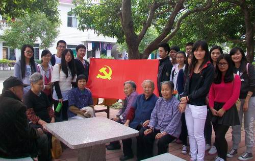 2013年11月23日,我系员工第三党支部党员、预备党员赴白云区钟落潭镇敬老院,开展了以“伸出你我双手,传递你我爱心”为主题的探访活动。这次活动的目的是为敬老院的老人们带去心灵上的慰藉,让他们感受青年的朝气和社会的温暖,同时让我们学会关爱、学会感恩,增强我们的社会责任感,。