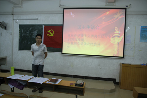 通过本次民主生活会,再一次强调了党员应在各方面发挥模范先锋作用,同时加强了毕业生党员以及毕业生党员的交流。