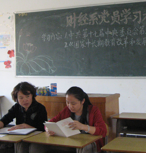 会上,与会党员一起学习了“中共第十七届中央委员会第五次全体会议公报”、《国家中长期教育改革和发展规划纲要》等文件。