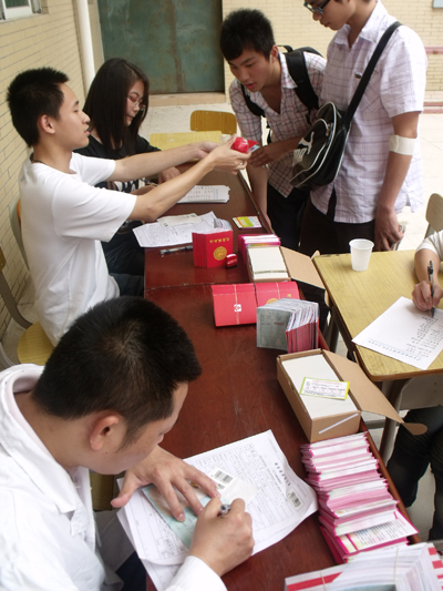 献血现场,师生们填写表格到验血、献血,整个过程井然有序。当被问及参加无偿献血的原因时,同学们的回答各不相同,但我们可得到一个共识:献出一点爱心,增添一份关怀,挽救一个生命。同学们积极参与献血的热情给广州血液中心的工作人员留下了深刻印象。据血液中心的工作人员统计,一共有八百多名师生参与这次献血活动。