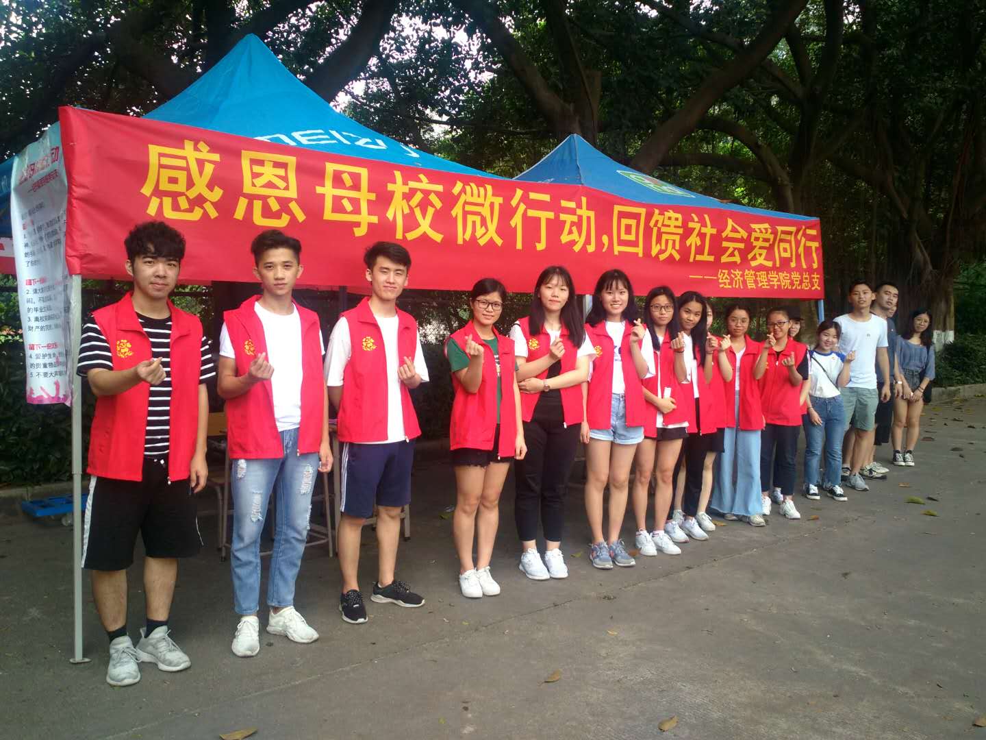 为落实这项倡议,党总支组织党员员工和入党积极分子分别在校园南苑一路和大小足球场的过道设立爱心同行工作站,服务站的党员同志们一共分为签收组、搬运组、后勤组,分别负责毕业生现场捐赠的物资签收,将物资搬运到服务站,后勤保障等工作。从早上8点半设摊、接受捐赠、上门收件,直至下午6点收摊,搬着物资来回穿梭在校园中的红色身影,打动了每一位捐赠物资的毕业生。毕业生们秉承着感恩母校的信念,踊跃支持本次感恩微活动,捐赠出自己闲置的物品,力求能给有需要的人送去一份温暖。