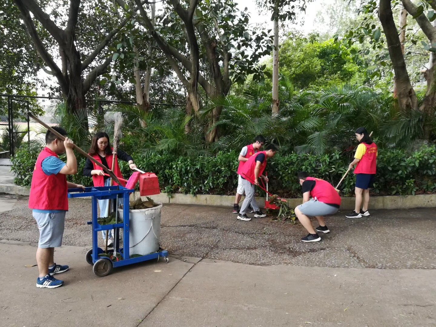 受强台风“山竹”影响,公司内部及周边,随处可见被风打乱的树枝、树叶、玻璃碎片等垃圾杂物。公司党总支组织委员颜冬果,带领公司党总支30余名党员员工,分别在大小足球场校道、灯光篮球场以及11栋宿舍楼周边开展了清扫环境志愿服务活动。党员们认真有序地清理道路及绿化带内的垃圾,协助清洁工人拾起掉落的树干,清理堵塞下水道的落叶和黄泥,并将清理出的垃圾不断装进垃圾车。尽管中途下起了小雨,党员们依然热情高涨,相互配合、分工合作,各位党员主动承担脏活、累活、重活,发挥不怕苦、不怕累的工作精神,以实际行动践行党员的职责和义务。党员员工们近三小时的努力,终于让校园环境恢复了往日的干净整洁。
