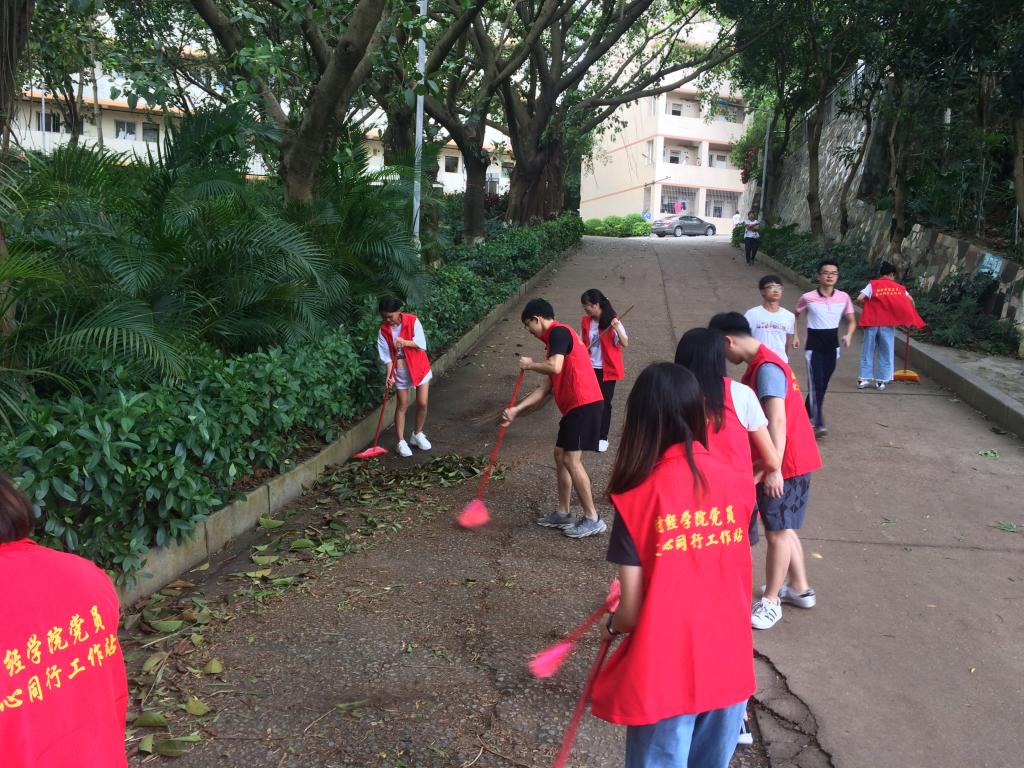 (通讯员 林淑贞、徐兴敏)9月17日,刚刚经受强台风“山竹”暴风骤雨考验的南粤大地终于迎来久违的阳光。“山竹”过后,我省遭受台风灾害,部分市县损失较大,我们美丽的校园也变得一片狼藉。天灾无情,但我们无畏天灾,“家”由我们来守护!为尽快恢复校园整洁的容貌,17日下午,在公司党委组织部的部署下,公司党总支组织党员员工开展灾后环境清洁行动。