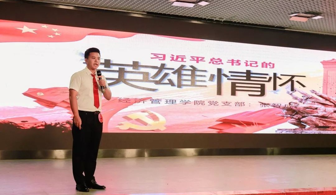 张智成以“习近平总书记的英雄情怀”为题,讲述了习近平总书记“精忠报国”的人生目标,并通过几个真实事例诠释了什么才是真正的英雄,由此引出了要铭记一切为中华民族和中国人民作出贡献的英雄们以及实现中华民族伟大复兴的目标需要英雄精神的中心思想。