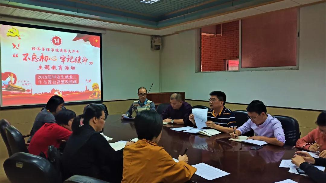 (通讯员 徐兴敏)10月30日下午,为深入贯彻落实“不忘初心、牢记使命”主题教育活动,扎实开展高校毕业生就业工作,2019届毕业生就业工作布置会及整改措施在7栋222会议室召开。党总支书记、副经理谭飞,副经理张志红,副经理陈天勇,办公室主任段妍君,各系主任以及2019届毕业班全体辅导员出席本次会议。