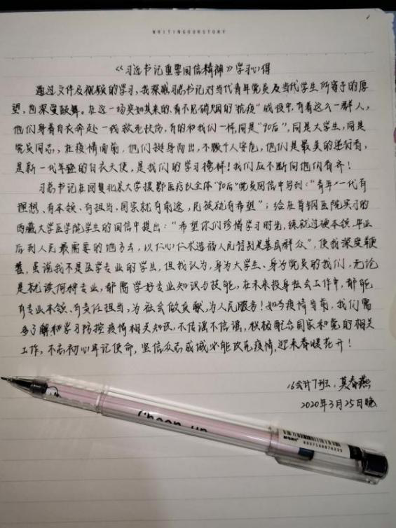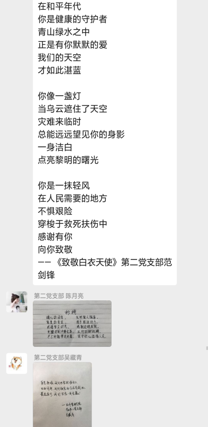员工第二党支部全体党员通过阅读《习总书记重要回信精神》相关文件,体会到习近平总书记对17位西藏大学医公司员工在实习中认真锻炼临床基本功的肯定。通过观看《回信在首钢医院引起热烈反响》视频,感受到了青春的力量,青年一代“有理想、有本领、有担当,国家就有前途,民族就有希望”。会后,各党员同志通过编写诗歌散文,制作海报等特别的方式表达对在抗疫一线“战士们”的敬意以及对国家抗疫行动的支持。