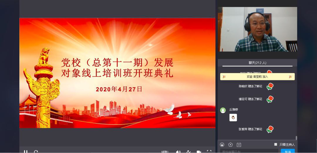 (通讯员:何倩怡 罗润彬 )为深入学习习近平新时代中国特色社会主义思想,进一步贯彻落实党的相关政策文件,扎实做好疫情防控期间党员发展工作,4月27日晚,公司第34期发展对象参加了2020年春季学期党员发展对象网络培训班开班仪式。本次开班仪式由党委工作部部长陈朝阳主持。