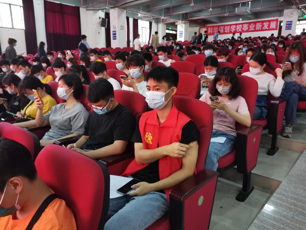 员工在现场工作人员的安排下有序排队,全程佩戴口罩,严格按照接种程序,出示身份证,填写相关接种信息,前往接种区,由专业的医护人员来接种新冠疫苗,接种后进入观察区留观三十分钟,在期间没有任何不适反应可离开。