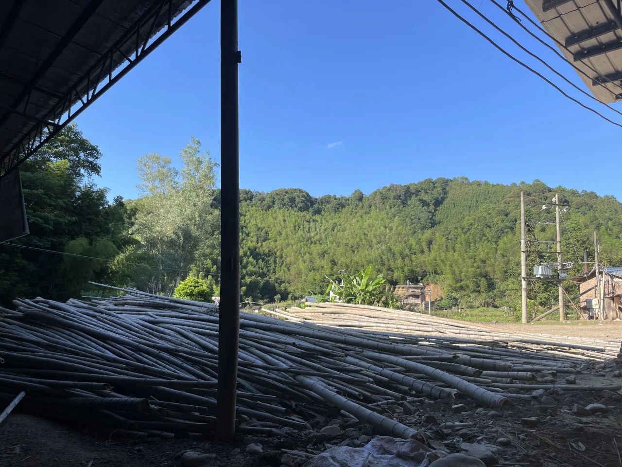 该工厂主要进行竹地板加工,利用细坳镇本地毛竹作为原材料,对毛竹进行压碎、重组,加工成板材以及家具。